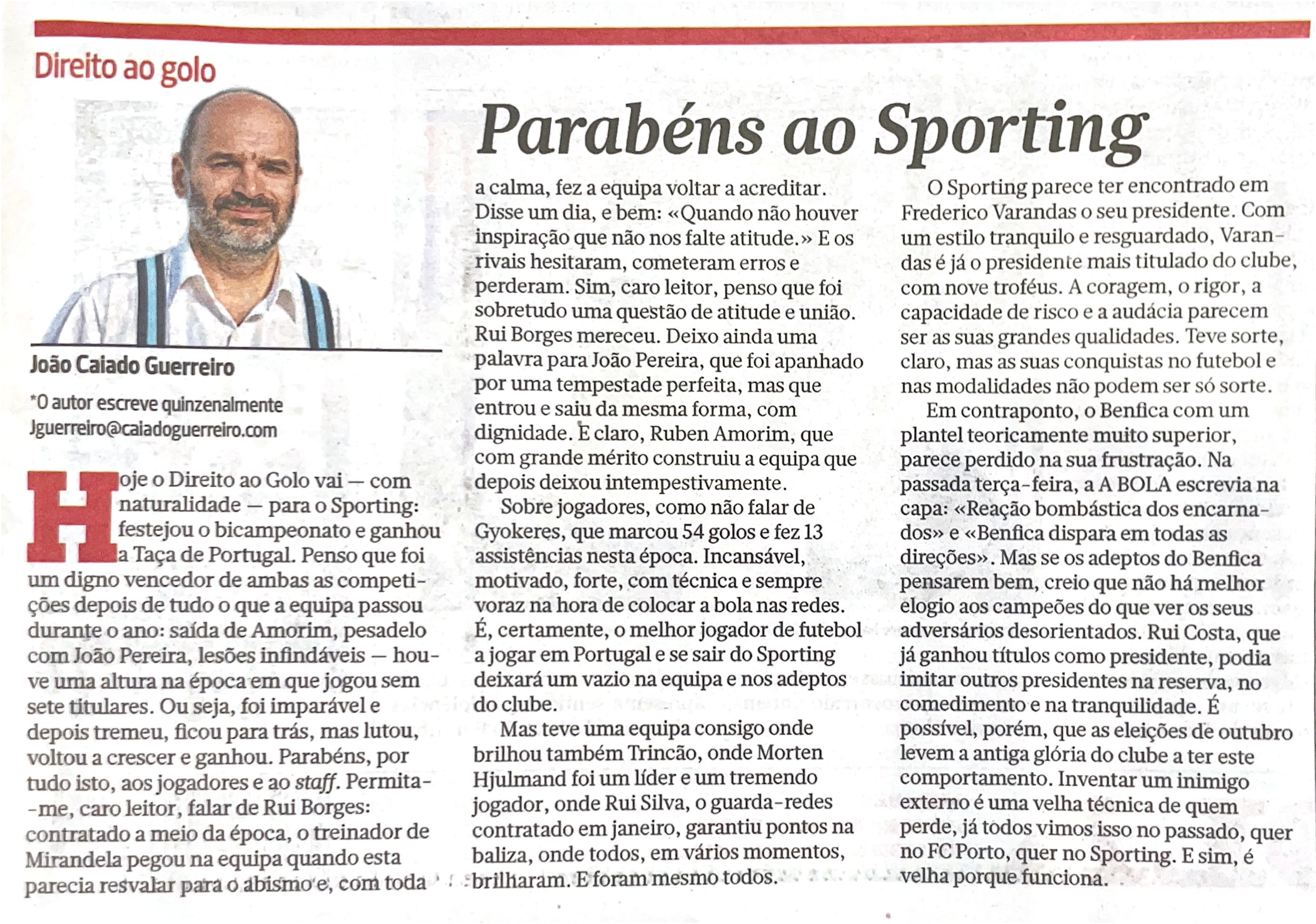 O artigo de João Caiado Guerreiro n’A Bola, com vídeo.