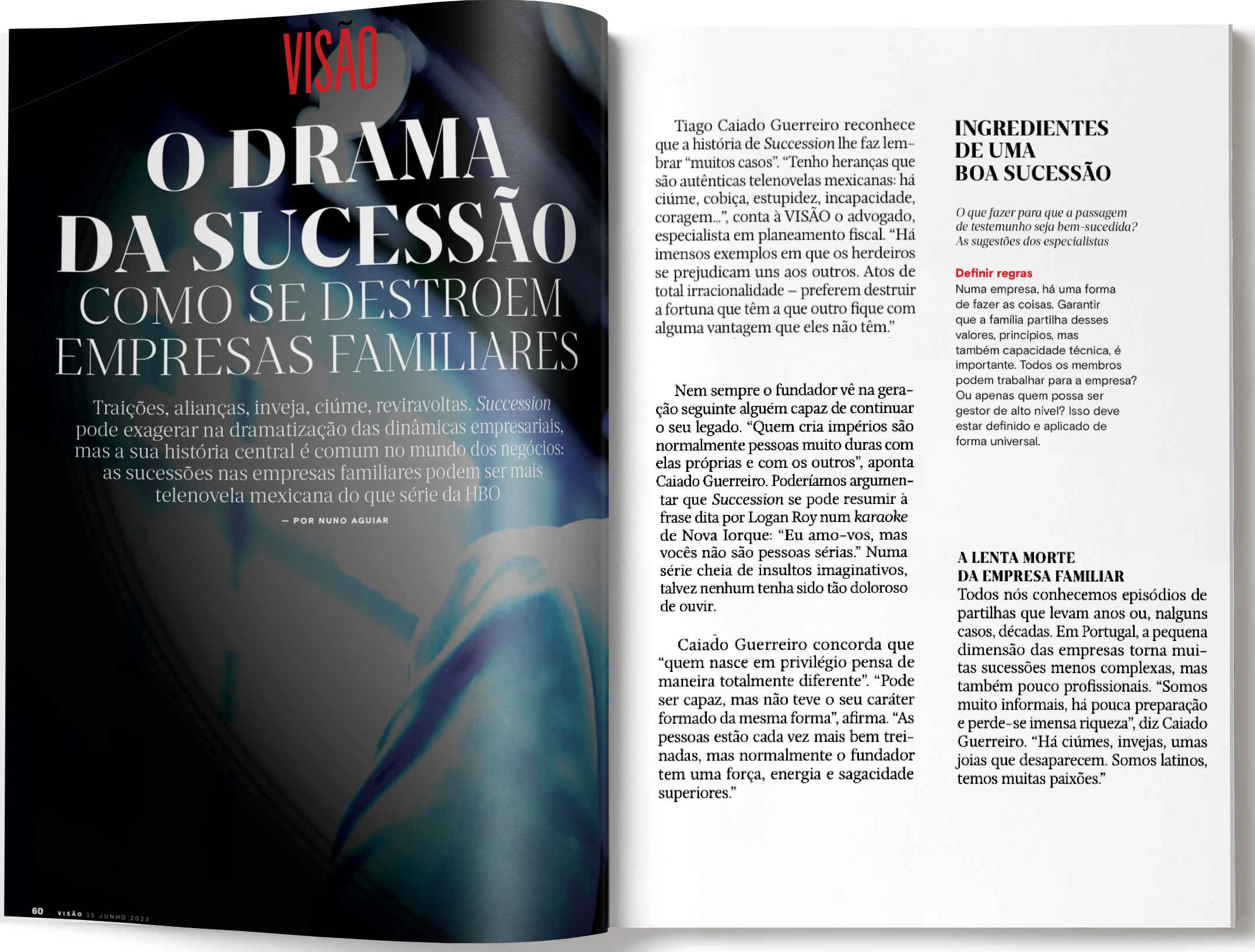 Tiago Caiado Guerreiro, sócio e responsável do departamento de Fiscal e Segurança Social, foi um dos convidados da reportagem da Revista Visão sobre a série "Succession", onde a ficção se confunde com a realidade.