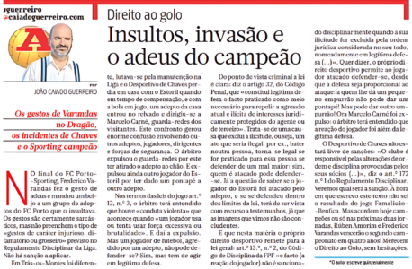 No "Direito ao Golo" de João Caiado Guerreiro no jornal A Bola: "Os gestos de Varandas no Dragão, os incidentes de Chaves e o Sporting campeão".