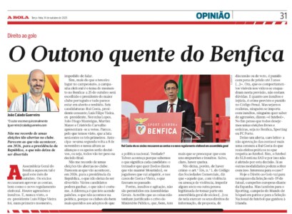 No Direito ao Golo desta semana, de João Caiado Guerreiro, no jornal A Bola: «Não me recordo de umas eleições tão abertas no clube. Parecem as que vão acontecer em 2026, para a presidência da República, o que não deixa de ser divertido.».